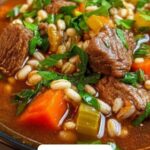 Reheat your Beef Barley Soup Recipe on the stovetop over medium heat, stirring occasionally to ensure even warming. If it thickens too much, add a splash of water or broth to loosen the consistency. Microwaving works well too, but just be sure to heat it thoroughly and stir halfway through for the best results.