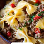 This comforting Bowtie Pasta with Ground Beef combines tender farfalle pasta with a creamy, flavorful beef sauce enriched with tomatoes, beef broth, and cheese. Ready in just 30 minutes, it’s a perfect weeknight dinner that’s hearty and satisfying.