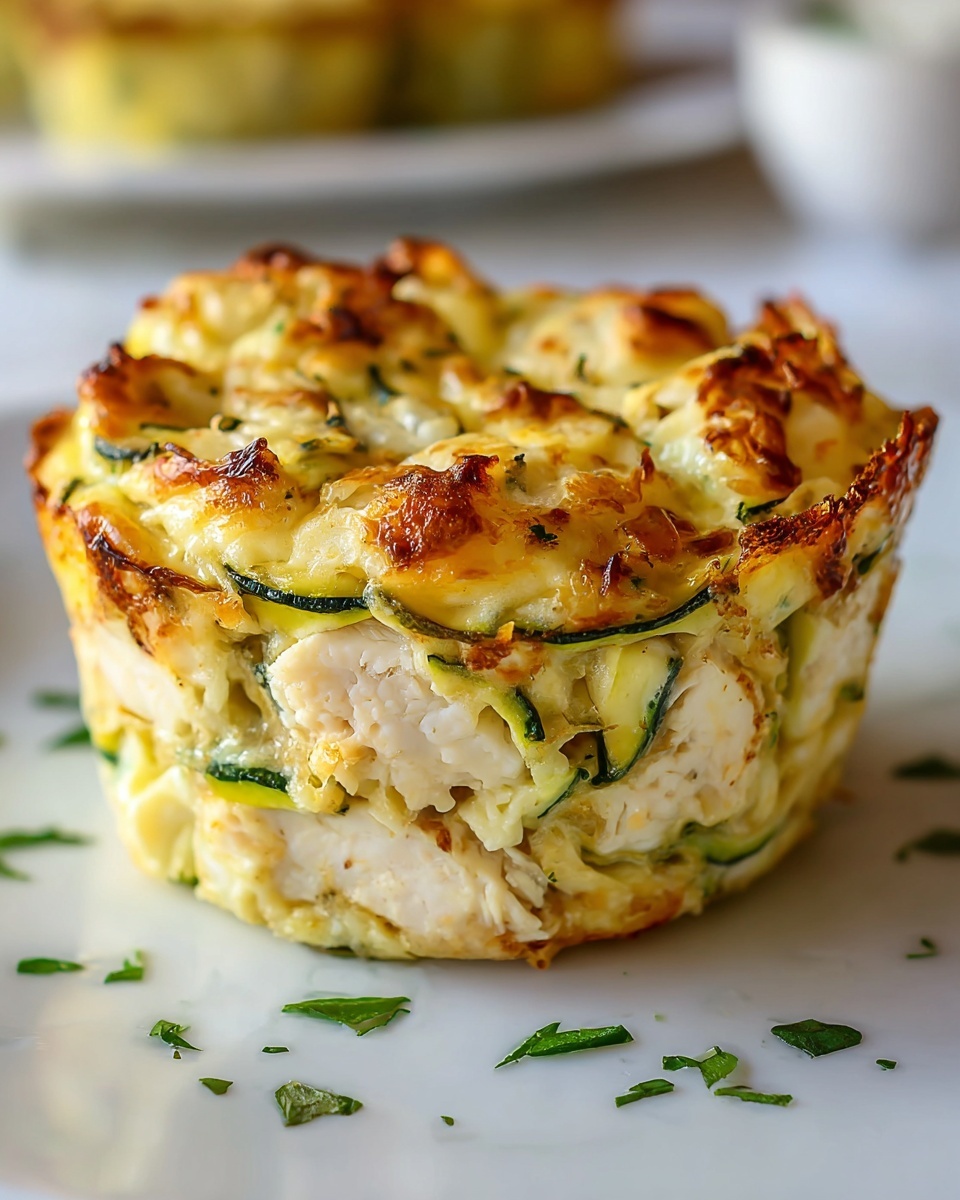 For a party or snack platter, arrange the Chicken, Cheese, and Zucchini Muffins Recipe on a wooden board surrounded by sliced cucumbers, cherry tomatoes, and olives. Wrap individual muffins in parchment paper tied with twine for grab-and-go lunches. You can even slice them in half and stuff with a bit of fresh spinach and mustard for a mini sandwich twist.