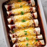 Pour the remaining red enchilada sauce evenly over the rolled tortillas and sprinkle the rest of the shredded cheeses on top for that beautiful melty finish. Cover the dish with foil and bake for 20 minutes to heat everything through and meld the flavors. After that, remove the foil and bake for another 10 minutes to create a bubbly, golden cheese crust that’s irresistible. Let your enchiladas rest a few minutes after baking to allow the sauce to set slightly, making serving easier and more elegant.
