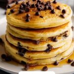 Deliciously fluffy chocolate chip pancakes made with a simple batter of flour, sugar, baking powder, and milk, studded with mini chocolate chips. Perfect for a kid-friendly, easy-to-make breakfast that can be customized to be dairy-free or vegan.