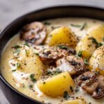 This comforting Mushroom Potato Soup is a creamy, flavorful vegan recipe perfect for warming up on chilly days. Made with sautéed mushrooms, tender potatoes, and a blend of herbs, this soup is smooth, nourishing, and easy to prepare in just 35 minutes. It uses plant-based milk and vegetable broth to keep it dairy-free and vegan-friendly.