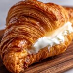 Lay each piece of dough on your prepared baking sheet and gently form it into a ring shape or elongated oval—whichever you prefer. Leave some space between them so they can puff up without sticking together. Spoon a dollop of the cream cheese filling right into the center of each pastry, promising a creamy surprise inside.