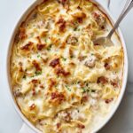 Begin by preheating your oven to 350°F (175°C) to ensure it’s ready when your casserole mixture is complete. While it heats up, boil your wide egg noodles in salted water until they are just al dente, around 8 minutes. This prevents them from becoming mushy when baked, guaranteeing a perfect texture in your casserole.