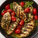 This Easy Pesto Chicken recipe features tender, juicy chicken breasts baked to perfection with a vibrant homemade basil pesto. Combining fresh basil, grated Parmesan, garlic, olive oil, and lemon juice, the aromatic pesto infuses the chicken with bold flavors. Ready in just 40 minutes, it’s a simple yet satisfying main dish perfect for weeknight dinners or meal prep.