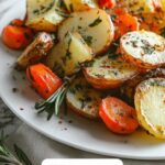 This Garlic Herb Roasted Potatoes, Carrots, and Zucchini recipe features tender, flavorful vegetables roasted to perfection with fresh thyme, rosemary, and garlic. A simple and healthy side dish bursting with savory herbs and a touch of olive oil, perfect for any meal.