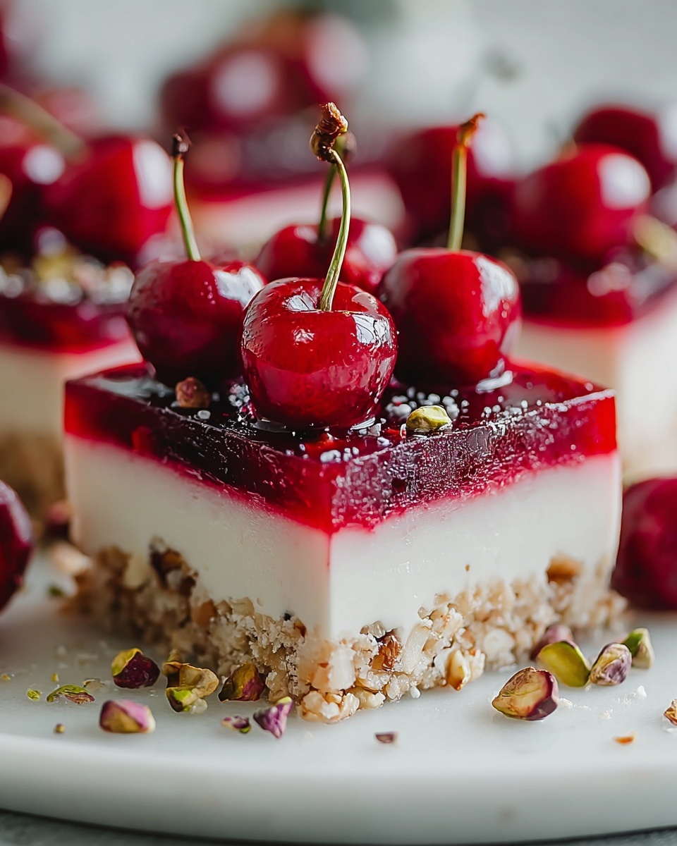 For special occasions, plate a cheesecake bar with a delicate cherry coulis swirl or individually portioned into mini jars layered with whipped cream and pistachio crumbs. Alternatively, pop them on a dessert board with complementary pastries and fresh berries for an eye-catching centerpiece.