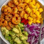 If you have leftovers of this Mango Avocado Shrimp Salad Recipe, cover the bowl tightly and refrigerate it for up to one day. Since avocado tends to brown, it’s best enjoyed fresh, but a squeeze of extra lime juice before storing can help preserve the vibrant color.