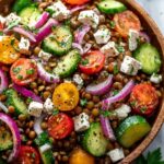 This Mediterranean Lentil Salad is a vibrant, nutritious dish combining tender lentils with fresh cucumber, cherry tomatoes, red onion, and Kalamata olives. Tossed in a tangy lemon-olive oil dressing and topped with crumbled feta cheese, it offers a perfect balance of flavors and textures. Ideal for a quick lunch or a light dinner, this salad can be served chilled or at room temperature.