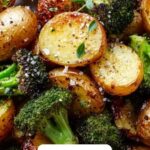 This Roasted Parmesan Potatoes & Broccoli recipe is a simple and delicious side dish featuring crispy roasted baby potatoes and tender broccoli florets, all coated in a flavorful blend of garlic, onion, and paprika, then topped with freshly grated Parmesan cheese and a touch of lemon juice for brightness.