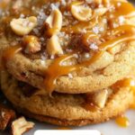 These Salted Caramel Crunch Cookies combine buttery, chewy cookie dough with sweet caramel and crunchy toffee bits, topped with a touch of flaky sea salt for the perfect balance of flavors and textures. Ideal for a delightful treat that satisfies your sweet tooth with a caramel twist.