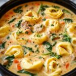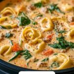 This Slow Cooker Creamy Tortellini Soup combines savory Italian sausage, tender cheese tortellini, and fresh spinach simmered in a flavorful tomato and herb broth enriched with heavy cream. Perfect for a comforting and hearty meal, this soup is easy to prepare and cooked low and slow to develop rich flavors, making weeknight dinners effortless and delicious.