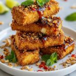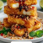Swicy Pistachio Halloumi with Lime Glaze offers a delightful combination of crispy, nutty coating and a bold, sweet-spicy tangy glaze. Perfect as a snack or appetizer, this recipe features halloumi sticks coated in pistachios, panko, and sesame seeds, shallow fried to golden perfection, then drizzled with a zesty lime-infused honey glaze.