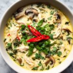 This Thai Coconut Chicken Soup Recipe keeps beautifully in the fridge for up to 3 days. Store it in an airtight container to preserve all those fresh, vibrant flavors and creamy textures.